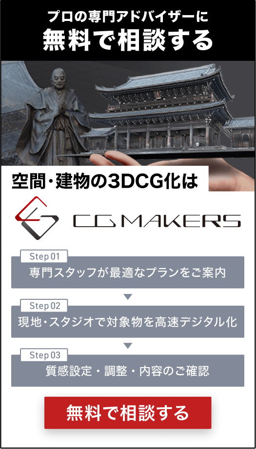 フォトグラメトリは写真から3DCGを作成できる非常に便利な技術です。近年ではフォトグラメトリと3Dスキャナと組み合わせ、寺院や重要文化財を空間ごと保存するケースも増えています。